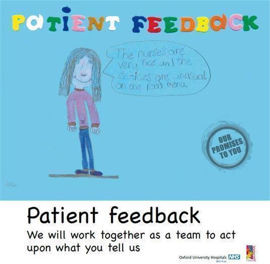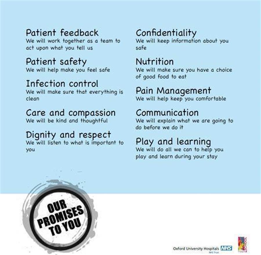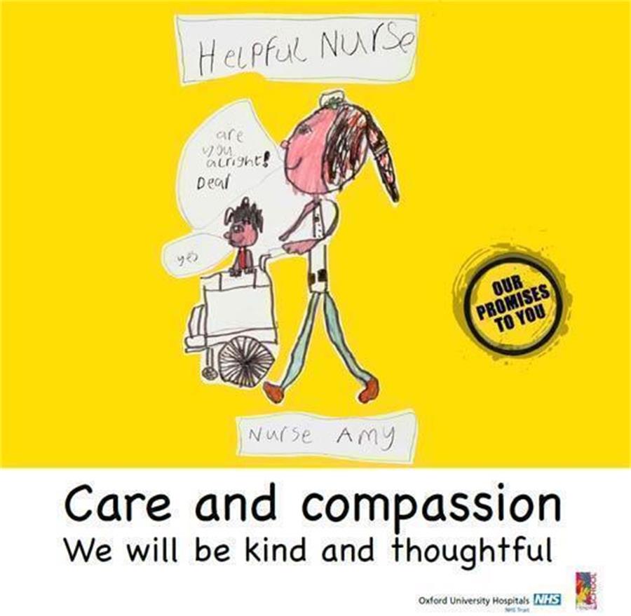 These have been transformed into a series of colourful posters which illustrate the promises that nursing staff make to patients. They are displayed in waiting areas and corridors used by children and their parents at the John Radcliffe and Horton General hospitals.