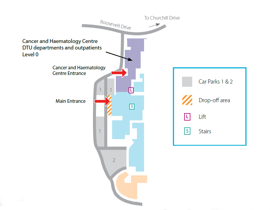 The Day Treatment Unit (DTU) is on Level 0 of the Cancer and Haematology Centre.