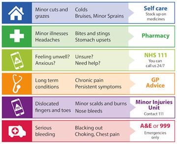 - Use your local Pharmacy if you can - they can help with a range of minor health issues including colds, skin problems and earaches