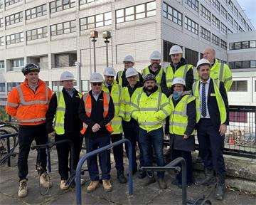 OUH staff including Mark Holloway (Chief Estates and Facilities Officer), Jeenash Mistry (Head of Estates and Facilities Operations), Wendy Cheeseman (Head of Sustainability and Carbon Management), and Craig Merrifield (Deputy Director of Capital Development) also joined the walkaround.